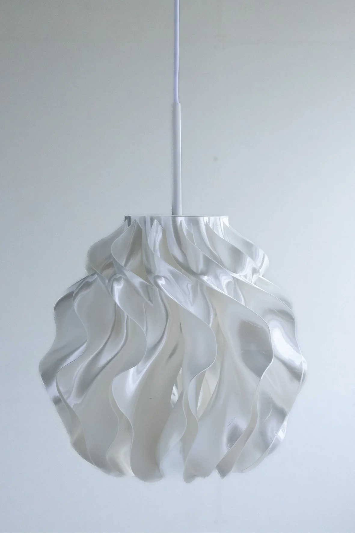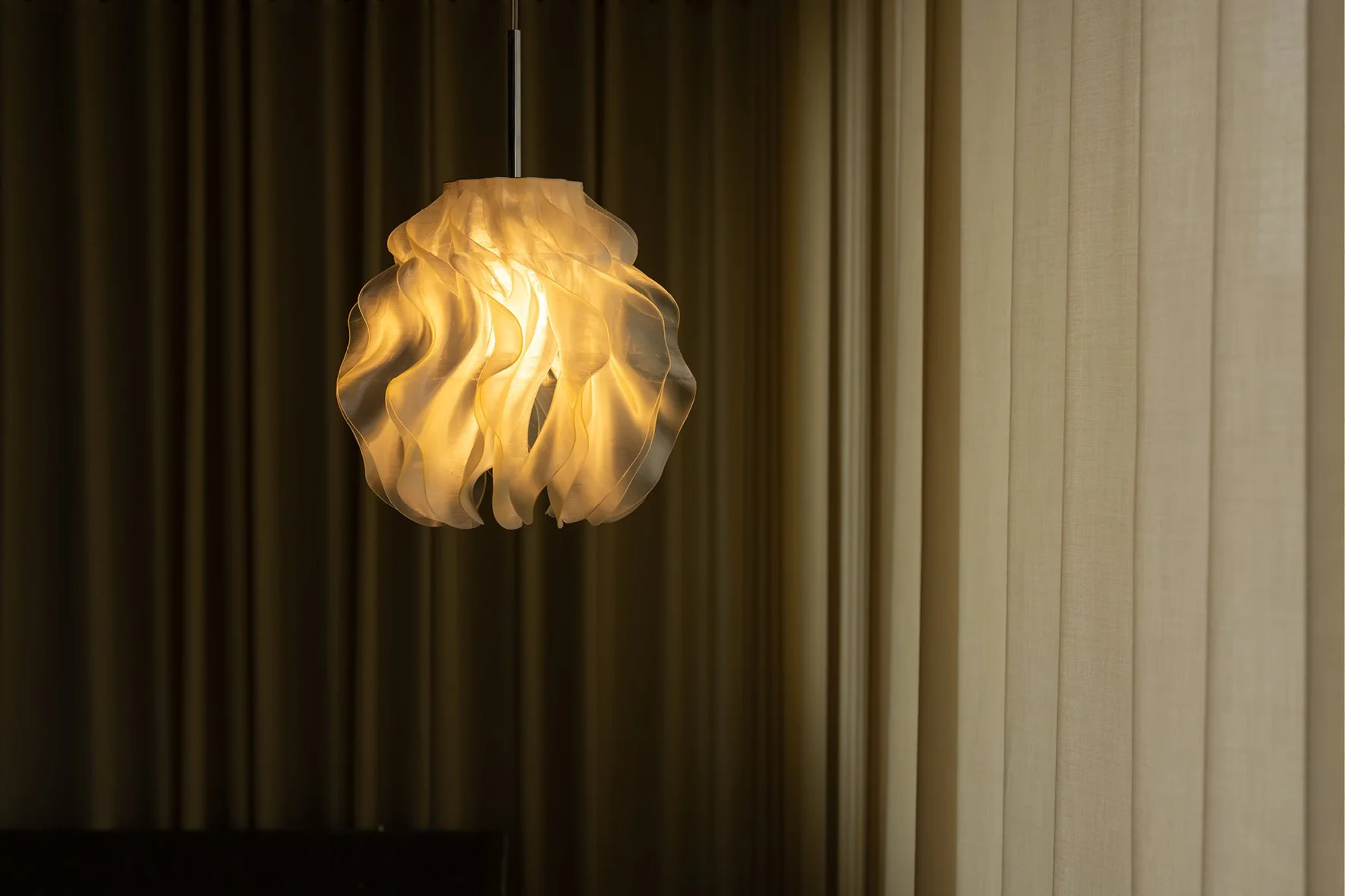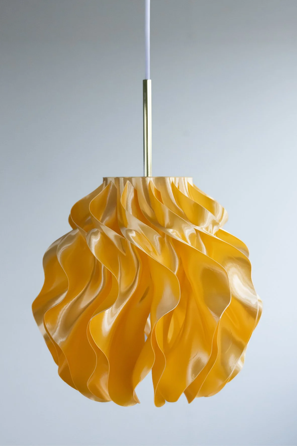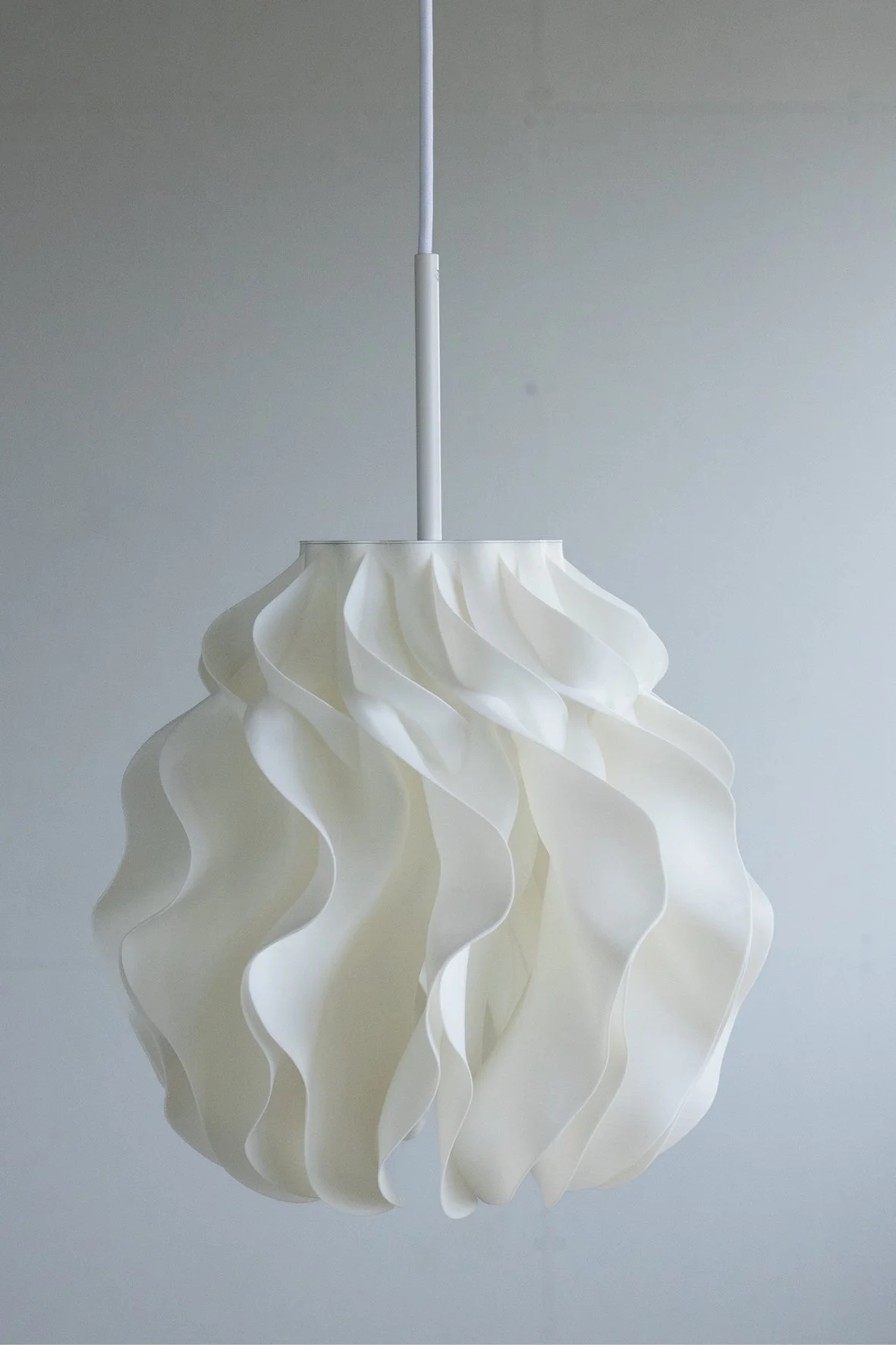 The organic form diffuses the light into a warm, even glow, revealing depth and rhythm in the geometry.