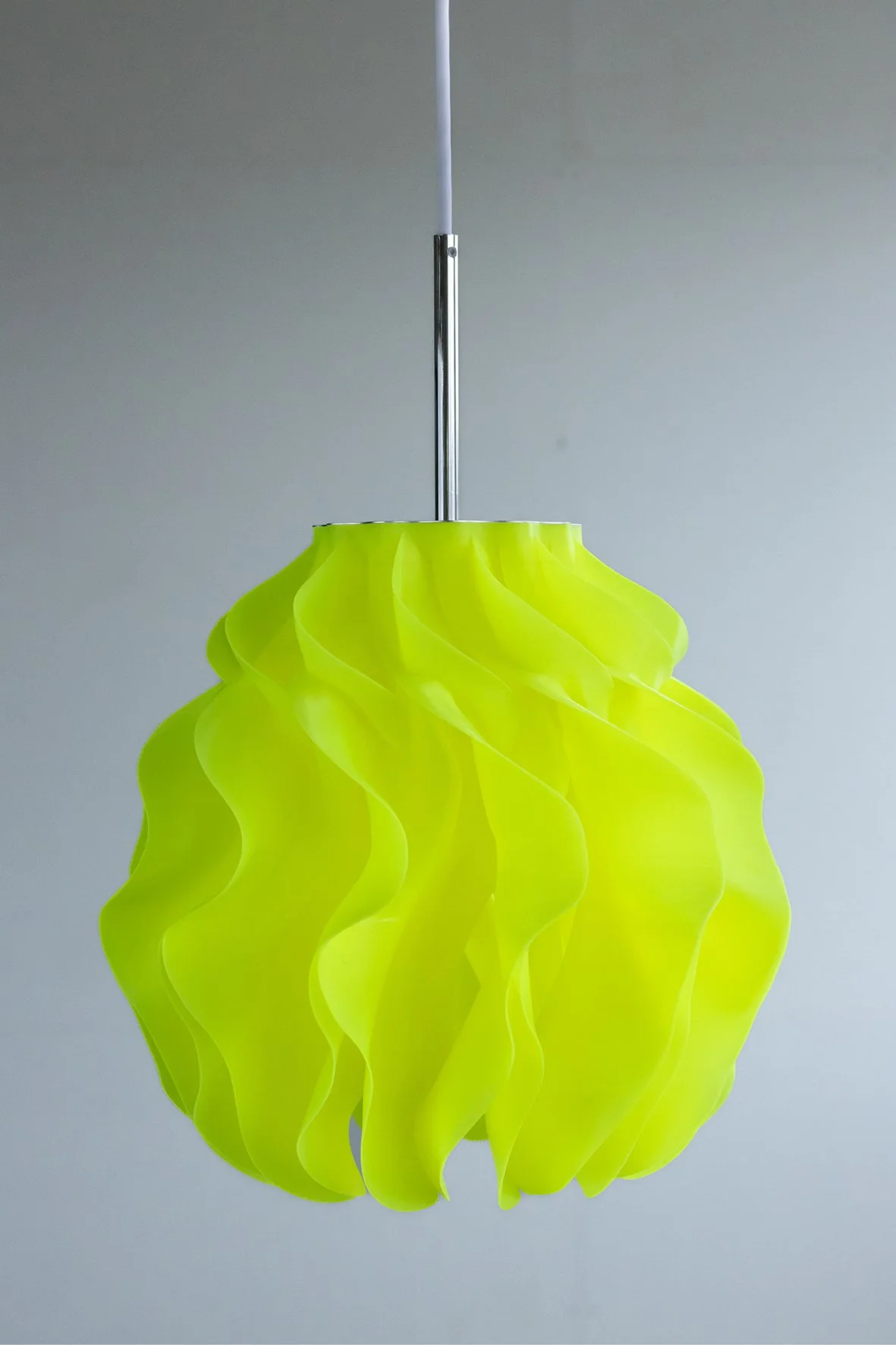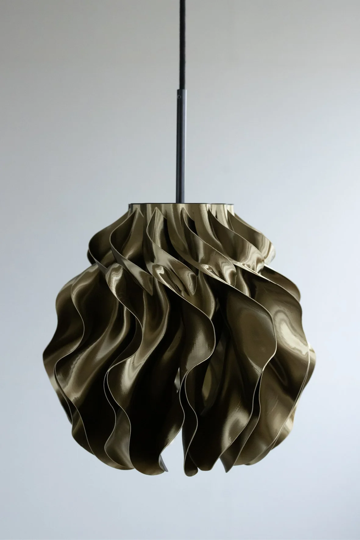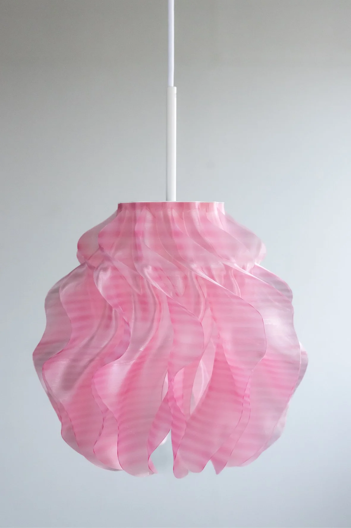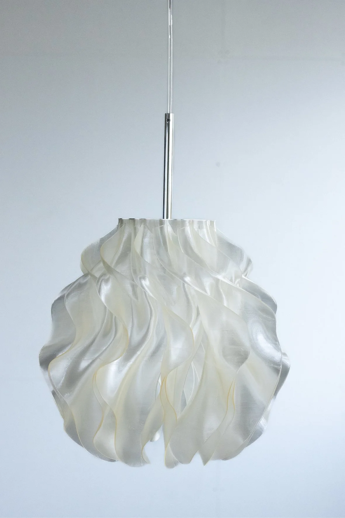 The organic form diffuses the light into a warm, even glow, revealing depth and rhythm in the geometry.