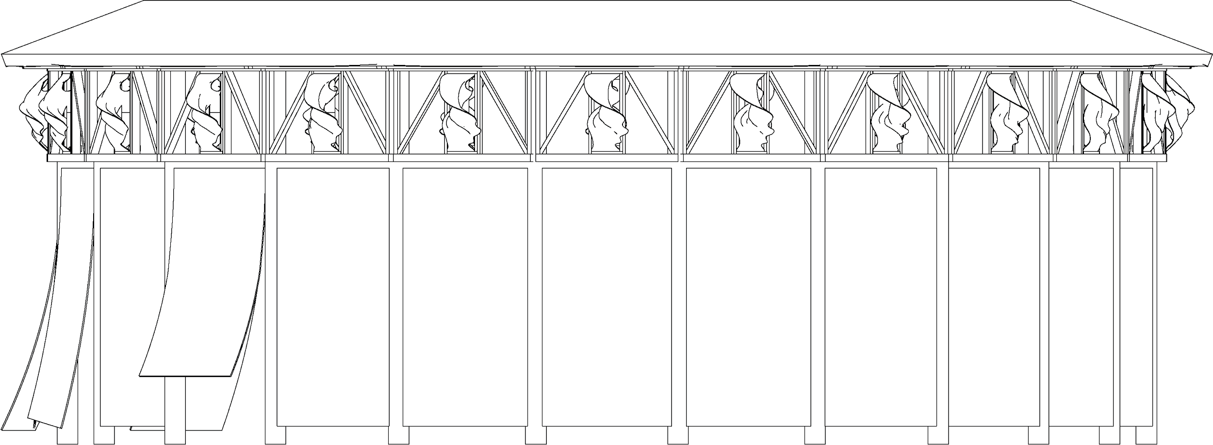 The pavilion is a circular, temporary structure exploring repetition, ornamentation and light at architectural scale. The project is based on a limited number of identical elements, arranged through rotation to form a continuous spatial system. Rather than treating ornament as surface decoration, repetition becomes a structural and spatial principle that defines both form and experience.